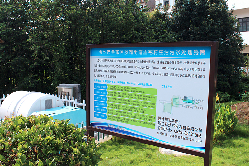 金華市多湖街道孟村生活污水處理工藝采用3D-RBC立體結(jié)構(gòu)生物轉(zhuǎn)盤處理設(shè)備,生活污水日處理量40噸,